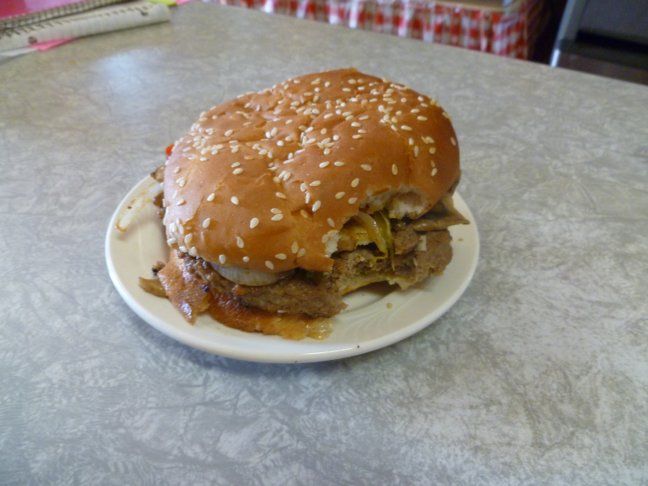 "The Mothman Burger", complete with a delicious "Mothman Sauce".
