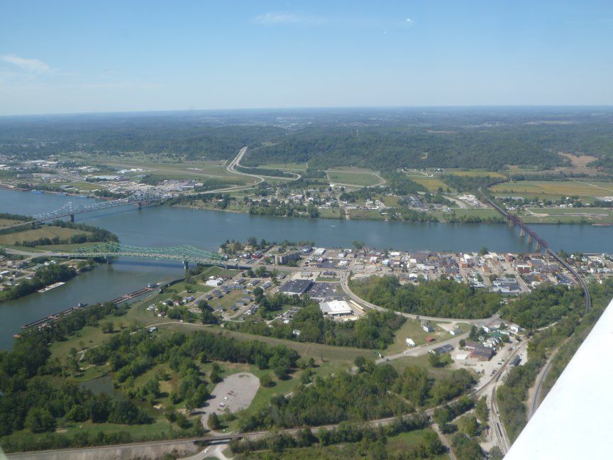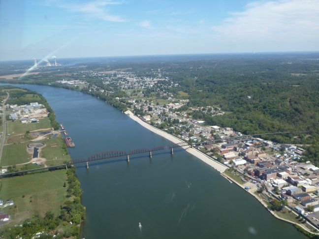 Arial views of Point Pleasant. In the above photo is the rail bridge, south of which once stood the Silver Bridge.